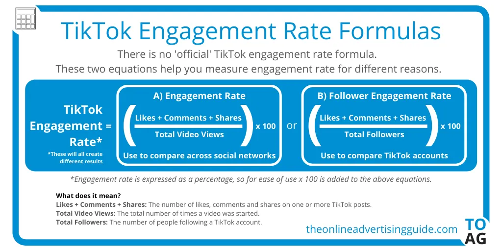 To calculate the engagement rate, you can use: Engagement Rate = (Total # of Post Engagements / # of Followers) x 100. For example, if the number of likes, views, and shares on a post is 1,000, and their follower count is 50,000, the engagement rate is 2%. Calculate this number and use it when deciding who to work with and during negotiations.