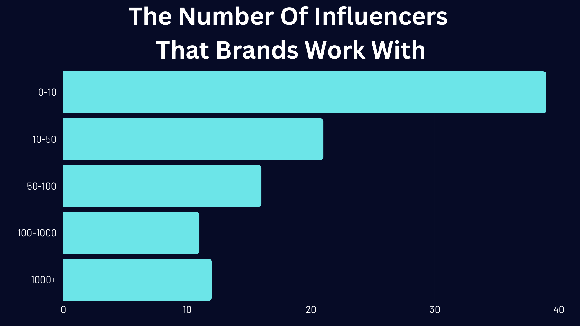 Most Brands Use 10+ Influencers: One common misconception, based on a misinterpretation of the graph above, is that most brands use 10 or fewer influencers. However, when you combine the four bottom sections of the graph, it tells a different story: 62% of brands use more than 10 influencers. This highlights the importance of leveraging multiple influencers in your campaigns.