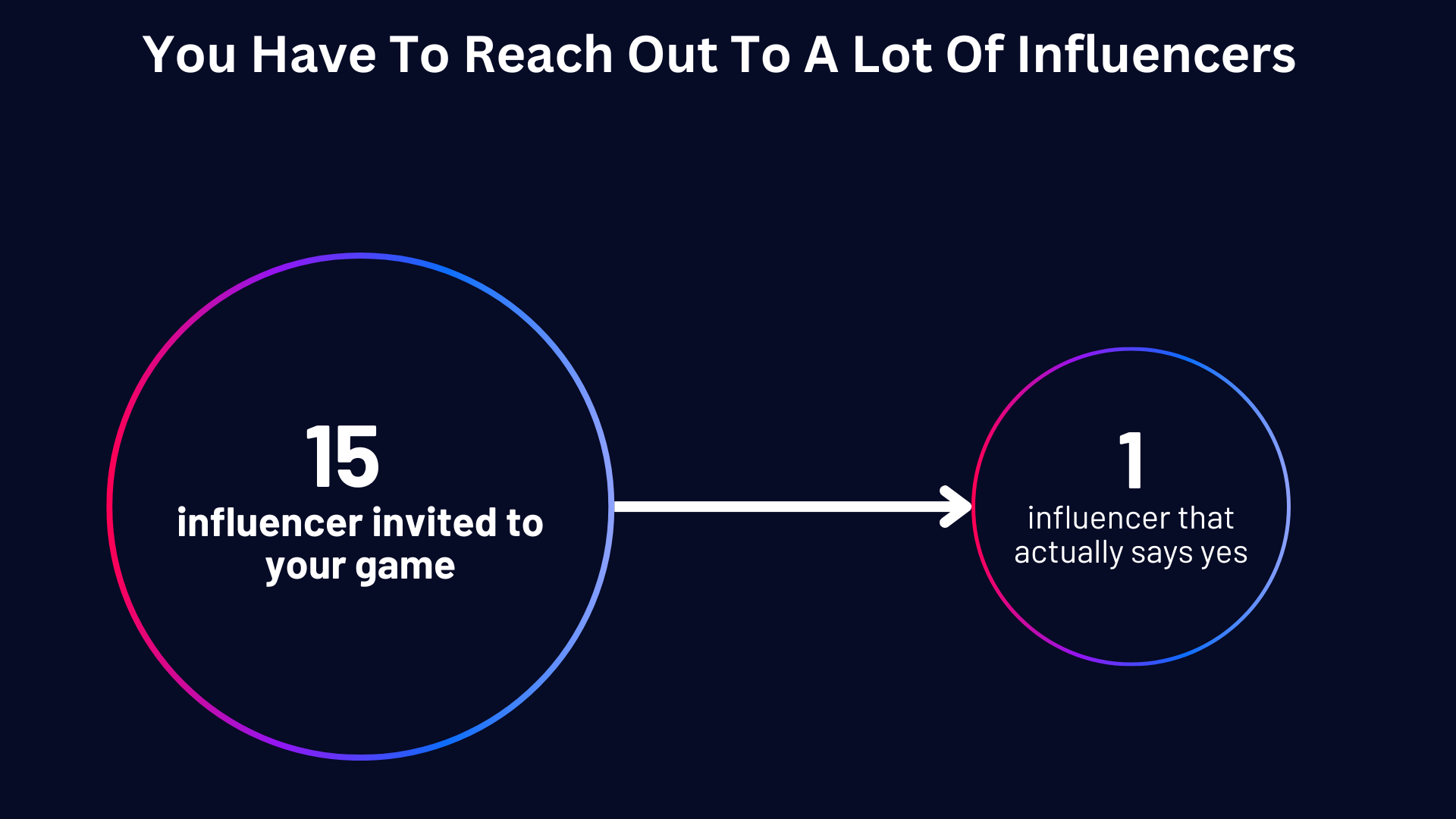 Set realistic expectations: out of every 15 influencers you invite, only about 1 will actually follow through and create content for your game. Even if influencers respond, the deal or negotiation phase might not work out, and a percentage of those who initially agree may never follow through. This means you’ll need to reach out to a large number of influencers to secure the ones you need for a successful campaign.